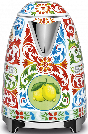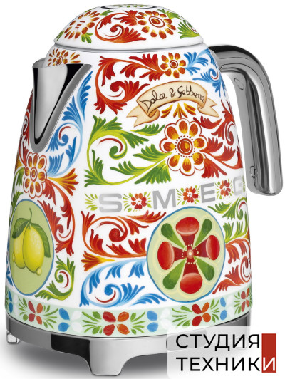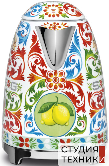 Дополнительная информация:- Электрический чайник Smeg созданный в сотрудничестве с дизайнерами Dolce&Gabbana. На корпусе прибора расцвели золотые лимоны, распустились цветки опунции и зацвели яркие вишни. Всё это элементы сицилийского изобразительного искусства, обрамлённого треугольными узорами под названием crocchi