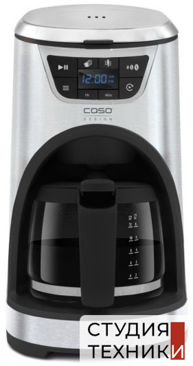 Технические характеристики:- Тип: капельная кофеварка- Объем: 1.5 л- Тип кофе: молотый- Материал корпуса: нержавеющая сталь- Цвет: металлик- Потребляемая мощность: 1 кВт- Размеры (ВхШхГ): 25х42х34 см Управление/функции:- Управление: электронное- Элементы управления: кнопки- Электронный контроль температуры- ЖК- дисплей- Режим подогрева- Функция поддержания тепла (35 мин)- Температура нагревания воды: 96 С- Таймер (замачивание по времени)- Противокапельная система- Индикатор включения- Индикатор очистки от накипи- Регулировка крепости кофе - Функция «Aroma Control»- Подсветка голубым светом