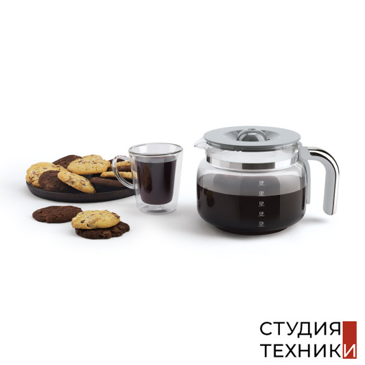 Оснащение:- Резервуар для воды: 1,4 л- Стеклянный съемный кувшин для кофе с крышкой, объем: 1.25 л- Многоразовый съемный фильтр для кофе- Мерная ложка