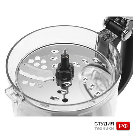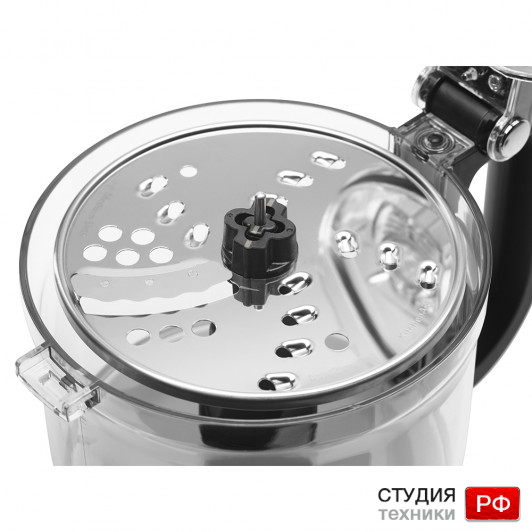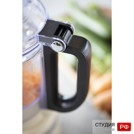 Комплектация:- Многофункциональное лезвие- Насадка для теста- Двусторонний диск для нарезки ломтиками средней толщины (4 мм)/шинковки- Диск только для нарезки ломтиками толщиной 6 мм- Рабочая чаша объемом 1,7 л из пластика без бисфенола А с приводным стержнем- Откидная крышка с падающей трубкой «2 в 1» и 2 – составной толкушкой- Адаптер привода- Место для хранения насадок