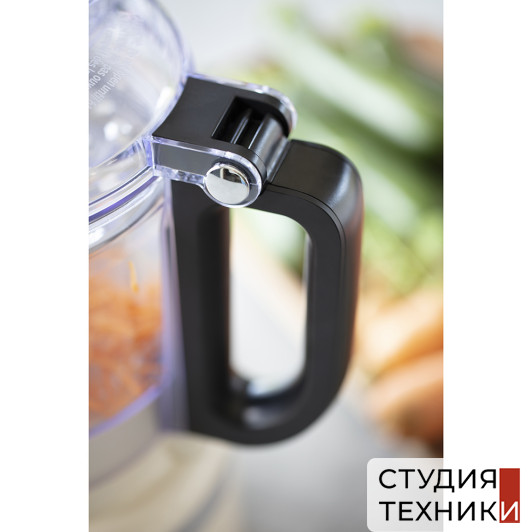 Комплектация:- Многофункциональное лезвие- Насадка для теста- Двусторонний диск для нарезки ломтиками средней толщины (4 мм)/шинковки- Диск только для нарезки ломтиками толщиной 6 мм- Рабочая чаша объемом 1,7 л из пластика без бисфенола А с приводным стержнем- Откидная крышка с падающей трубкой «2 в 1» и 2 – составной толкушкой- Адаптер привода- Место для хранения насадок