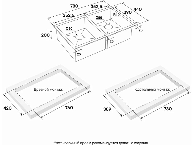 | Установка: | врезная, подстольный монтаж |