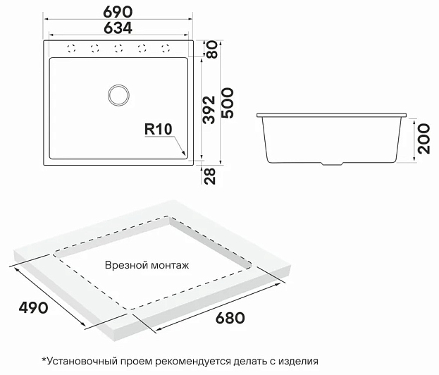 Установка: врезная