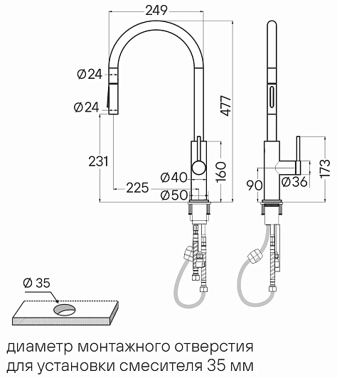 • выдвижной излив