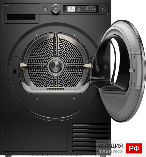 Сушильная машина ASKO T509HRGОбщие характеристики:- Серия: Style, Series 5- Вид: для дома- Тип установки: отдельностоящая- Тип сушки: конденсационная с тепловым насосом- Тип загрузки: фронтальная- Максимальная загрузка: 9 кг- Количество программ сушки: 18- Объем барабана: 117 л- Уровень шума: 59 дБ- Цвет: черный графит- Мощность подключения: 700 Вт- Класс энергопотребления: А- Класс сушки: А- Размеры (В×Ш×Г): 85×59.5×63 см- Вес нетто: 58 кгУправление, функции:- Управление: электронное- Элементы управления: поворотный переключатель + сенсорный дисплей- Дисплей: цветной TFT- Беспроводная связь: Wi-Fi - Сохранение избранных программ: до 6 программ- Управление сушкой: автоматическое (по датчику влажности) или ручное (по времени)- Подключение к приложению: ConnectLife.TRIRПрограммы сушки (18):- Eco Хлопок- Хлопок в шкаф- Хлопок под утюг- Синтетика- Деликатное белье- Шерсть- Смешанное белье- Постельное белье/Полотенца- Пух/Объемные вещи- Экспресс Про- Сушка по времени- Проветривание- Спортивная одежда- Джинсы- Рубашки/Блузы- Гипоаллергенная- Пропитка- Очистка барабанаОпции:- Степень высушивания (3 уровня)- Объем загрузки (полная, средняя, малая)- Режим сушки (стандартный, бережный, дезинфекция)- Антисминание- Отсрочка старта (от 30 мин до 24 ч)Особенности:- Sensi Dry™ - датчик влажности автоматически определяет время сушки- Butterfly Drying™ - специальная форма лопастей барабана для бережной сушки- Bundle Guard™ - защита от скручивания белья в комки- Multi Filter System™ - многоуровневая система фильтрации ворса- Барабан из нержавеющей стали с освещением- Бесщеточный мотор (BLDC)- Корзина для сушки в комплектеДополнительные параметры:- Объем емкости для конденсата: 6 л- Возможность отвода конденсата в слив- Регулируемые ножки- Угол открывания дверцы: 180°- Перенавешивание дверцы: Да- Длина кабеля: 210 см- Напряжение: 220-240 В- Частота: 50 ГцБезопасность:- Защита от детей (блокировка панели управления)- Автоматическое отключение при перегреве- Блокировка при снятых фильтрах- Фаза охлаждения в конце программыСтрана производитель:- Словения