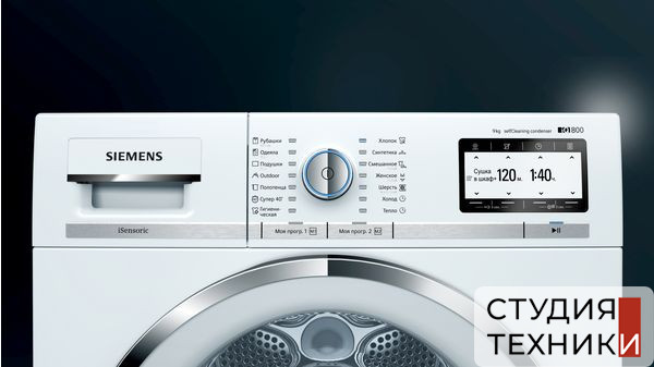 Управление:- Управление: электронное - Дисплей TFT: с отображением параметров выбранной программы и дополнительных функций- Home Connect: удаленный мониторинг, управление энергопотреблением, дистанционная диагноститка, Smart Dry- Светодиодная индикация заполнения ворсового фильтра и контейнера для конденсата- Сигнал окончания хода программы