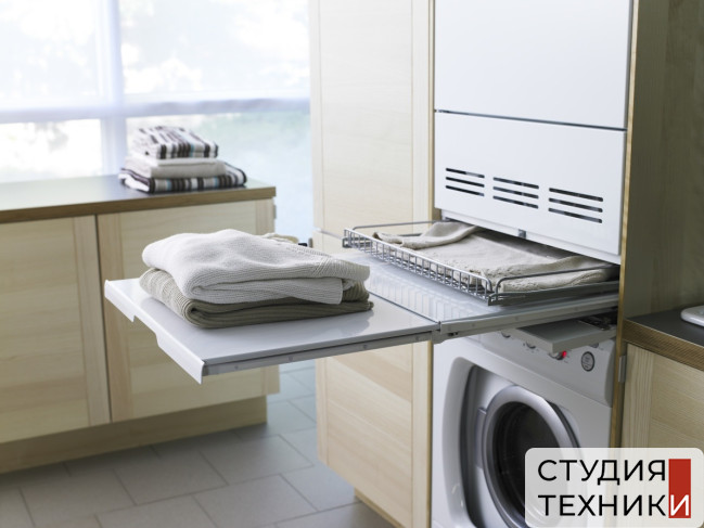• Выдвижная полка с корзиной для белья
