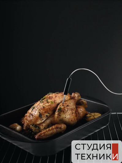 Принадлежности:- Глубокий противень- Плоский противень- Металлическая решётка- Термощуп для мяса- Телескопические направляющие на 1-м уровне
