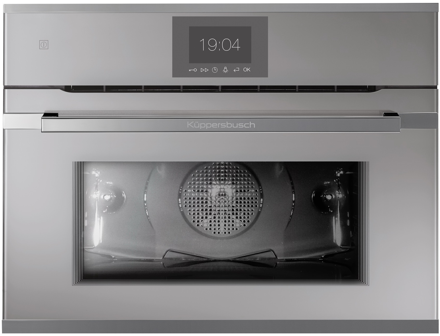 Компактный духовой шкаф Kuppersbusch CBP 6550.0 G3 Общие характеристики:- Тип: электрический- Установка: независимая- Цвет: белое стекло- Цвет фурнитуры: Silver Chrome - Объем духовки: 44 л - Мощность подключения: 2.9 кВт- Очистка: пиролитическая (3 уровня)- Размеры (ВхШхГ): 45.5х59.5х55.9 см- Размеры ниши для встраивания (ВхШхГ): 45х56х55 см