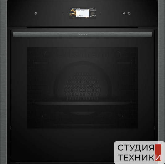 Управление, функции:- Сенсорная панель управления- Цветной русскоязычный графический дисплей 6,8"- Регулировка температуры в диапазоне 40-275 С- Индикация фактической температуры в духовке- Предложение по установке температуры- Автоматический быстрый разогрев- Многофункциональные часы EasyClock с таймером и программированием начала/ окончания приготовления