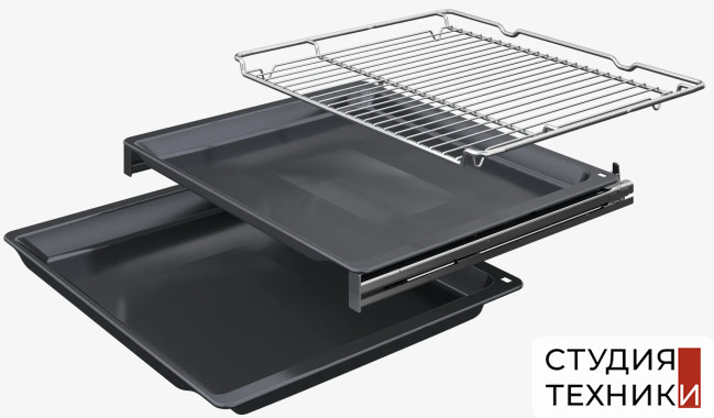 Принадлежности:- 1 эмалированный противень- 1 универсальный противень- 1 решетка- 1 большой поддон для приготовления на пару- 2 малых поддона для приготовления на пару- Термощуп