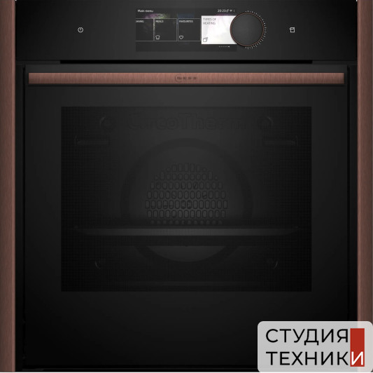 Управление, функции:- Сенсорная панель управления с поворотным регулятором- Цветной русскоязычный графический дисплей 6,8"- Регулировка температуры в диапазоне 40-275 С- Индикация фактической температуры в духовке- Предложение по установке температуры- Автоматический быстрый разогрев- Многофункциональные часы EasyClock с таймером и программированием начала/ окончания приготовления