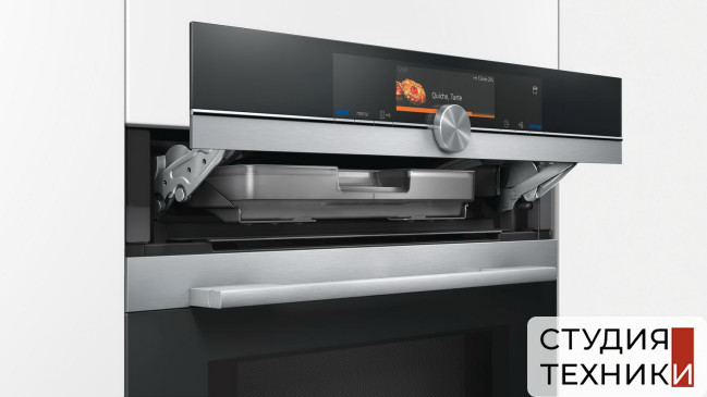 Дополнительная информация:- Полностью стеклянная внутренняя поверхность дверцы- Дверца духовки с амортизатором открытия-закрытия softMove- Съемный резервуар для воды емкостью 1 л- Резервуар для воды находится за выдвижной панелью управления- Конвекционный вентилятор из нержавеющей стали- Светодиодное освещение внутри духового шкафа- Телескопические направляющие на 1 уровне- Дверца духовки: откидная- Количество стекол дверцы духовки: 4- Максимальная температура наружного стекла дверцы: 30 °С - Инверторная технология, для долгих задач будет использована максимальная мощность в 600 Вт- Электронные часы- Система охлаждения прибора- Длина сетевого кабеля: 120 см
