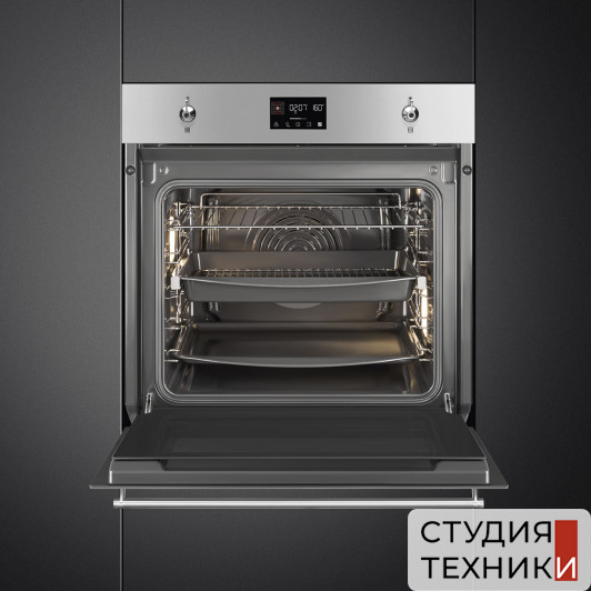 Общие характеристики:- Тип: электрический- Вид: независимый- Установка: встраиваемый- Цвет: нержавеющая сталь- Цвет фурнитуры: хром- Материал рабочей камеры: эмаль Evar Clean- Объем духовки: 68 л- Очистка духовки: паровая- Количество режимов работы: 10- Количество уровней приготовления: 5- Класс энергопотребления: А+- Потребляемая мощность: 2,9 кВт- Мощность гриля: 2,7 кВт- Размеры (ВхШхГ): 59.2х59.7х54.8 см- Размеры ниши для встраивания (ВхШхГ): 58.5х56.4х56 см