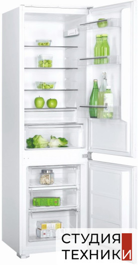 Общие характеристики:- Тип: встраиваемый- Вид: холодильник с морозильником- Количество камер: 2- Количество компрессоров: 1- Разморозка холодильной камеры: автоматическое- Разморозка морозильной камеры: ручная- Общий полезный объем холодильника: 265 л- Объем холодильной камеры: 198 л- Объем морозильной камеры: 67 л- Цвет: белый- Количество дверей:2- Дверной упор: справа- Уровень шума: 42 дБ- Класс энергетической эффективности: A+- Климатический класс: SТ- Потребляемая мощность: 115 Вт- Размеры (ВхШхГ): 177.7х54х54 см- Размеры ниши для встраивания (ВхШхГ): 177.7х56х55 см