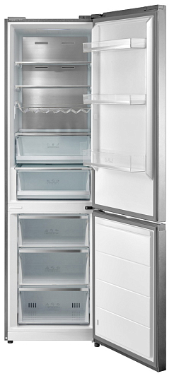 Общие характеристики:- Тип: отдельностоящий- Вид: холодильник с морозильной камерой- Количество камер: 2- Количество компрессоров: 1 - Разморозка холодильной камеры: No Frost- Разморозка морозильной камеры: No Frost- Общий объем холодильника: 360 л- Полезный объем холодильной камеры: 256 л- Полезный объем морозильной камеры: 104 л- Цвет: нержавеющая сталь- Уровень шума: 42 дБ- Класс энергетической эффективности: A+- Годовое потребление энергии: 409 кВтч/год- Размеры (ВхШхГ): 201.8х59.5х66 см