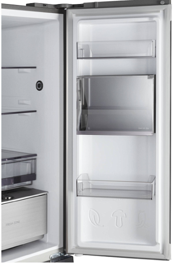 Холодильное отделение:- Задняя стенка Cold Metal- Освещение: Led- 2 полки из стекла- Количество полок на двери: 6 - Контейнеры для овощей и фруктов: 3- Зона свежести с изменяемым температурным режимом- Лоток для яиц