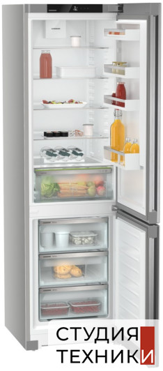 Холодильник Liebherr CNsfd 5703Общие характеристики:- Тип: отдельностоящий- Вид: холодильник с морозильником- Количество камер: 2- Количество компрессоров: 1- Разморозка холодильной камеры: автоматическая- Разморозка морозильной камеры: No Frost- Полезный объем холодильной камеры: 266 л- Полезный объем морозильной камеры: 94 л- Уровень шума: 38 дБ- Цвет: серебристый- Класс энергетической эффективности: А++- Размеры (ВхШхГ): 201.5х59.7х67.5 см Управление, функции:- Элементы управления: сенсорные- ЖК-дисплей монохромный, сенсорный экран- Диапазон температур морозильной камеры от -15 °C до -26 °C- Диапазон регулировки температуры в холодильной камере от +2 °C до +9 °C- Система SuperFrost температура в морозильной камере быстро понижается до -32 °С, создавая таким образом «резерв холода», необходимый для замораживания продуктов при максимальном сохранении витаминов автоматическое отключение через 65 часов (макс.) - Автоматическая функция SuperСool температура в холодильной камере поддерживается на уровне + 2 С в течении 12 часов, что идеально подходит для быстрого охлаждения продуктов питания- Функция «Отпуск»Холодильное отделение:- Освещение: Светодиодное потолочное освещение- Циркуляционное охлаждение- 5 полки из закаленного стекла, из них 4 регулируемые по высоте- Полка для 3 бутылок - Отделение для бутылок: 1- Контейнер для фруктов и овощей: 1- Количество полок на двери для хранения консервов: 3- Лоток для яиц- Фильтр из активированного угляМорозильная камера:- Время сохранения холода при отключении электроэнергии: 24 ч- Контейнеры выдвижные: 3Дополнительная информация:- Сторона открывания двери: правая, перенавешиваемая- Угол открывания двери 115°- Возможность доукомплектовать холодильник SmartDeviceBox для системы умного дома