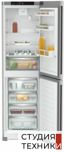 Холодильник Liebherr CNsfd 5704Общие характеристики:- Тип: отдельностоящий- Вид: холодильник с морозильником- Количество камер: 2- Количество компрессоров: 1- Разморозка холодильной камеры: автоматическая- Разморозка морозильной камеры: No Frost- Полезный объем холодильной камеры: 225 л- Полезный объем морозильной камеры: 123 л- Уровень шума: 38 дБ- Цвет: серебристый- Класс энергетической эффективности: А++- Размеры (ВхШхГ): 201.5х59.7х67.5 см Управление, функции:- Элементы управления: сенсорные- ЖК-дисплей монохромный, сенсорный экран- Диапазон температур морозильной камеры от -15 °C до -26 °C- Диапазон регулировки температуры в холодильной камере от +3 °C до +9 °C- Система SuperFrost температура в морозильной камере быстро понижается до -32 °С, создавая таким образом «резерв холода», необходимый для замораживания продуктов при максимальном сохранении витаминов автоматическое отключение через 65 часов (макс.) - Автоматическая функция SuperСool температура в холодильной камере поддерживается на уровне + 2 С в течении 12 часов, что идеально подходит для быстрого охлаждения продуктов питания- Функция «Отпуск»Холодильное отделение:- Освещение: светодиодное потолочное- Циркуляционное охлаждение- 4 полки из закаленного стекла, из них 3 регулируемые по высоте, 1 складная- Отделение для бутылок: 1- Контейнер для фруктов и овощей: 1- Количество полок на двери для хранения консервов: 2- Лоток для яиц- Фильтр из активированного угляМорозильная камера:- Время сохранения холода при отключении электроэнергии: 24 ч- Мощность замораживания: 16 кг/сутки- Контейнеры выдвижные: 3Дополнительная информация:- Сторона открывания двери: правая, перенавешиваемая- Утопленная ручка (с обеих сторон, вертикальная, сплошная)- Угол открывания двери 115°- Ролики для транспортировки сзадиБезопасность:- Сигнализация неисправности: акустическая и оптическая- Сигнализация неплотно закрытых дверей: акустическая и оптическая- Защита от детейСтрана изготовитель:- Болгария