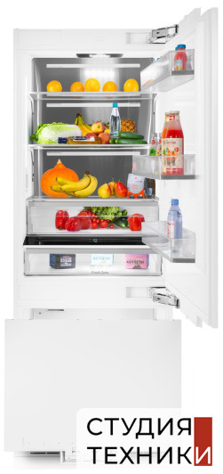 Дополнительная информация:- Внутреннее покрытие: антибактериальный пластик- Возможность перевешивание дверей- Две независимые системы охлаждения позволяют задавать температуру в холодильной и морозильной камерах с точностью до градуса. Вероятность смешивания запахов исключена.- Блокировка управления- Три независимые системы циркуляции воздуха (холодильная камера, фреш зона с диапазоном от -1 до +5, морозильная камера)- Система Air flow — панель холодного воздуха в верхней части холодильника обеспечивает более быстрое и равномерное охлаждение. Ваши продукты сохранят свежесть ещё дольше