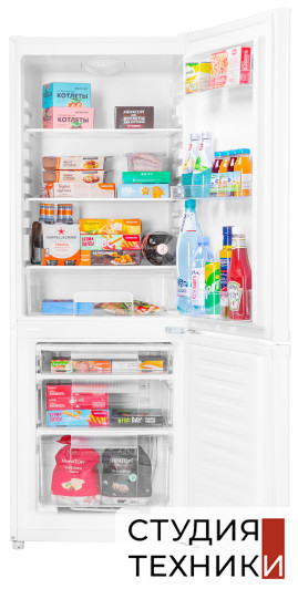 Общие характеристики:- Тип: отдельностоящий- Вид: холодильник с морозильником- Количество камер: 2- Количество компрессоров: 1- Разморозка холодильной камеры: DeFrost- Разморозка морозильной камеры: DeFrost- Общий полезный объем холодильника: 194 л- Полезный объем холодильной камеры: 143 л- Полезный объем морозильной камеры: 51 л- Цвет: белый- Уровень шума: 41 дБ- Класс энергетической эффективности: A+- Размеры (ВхШхГ): 148.8х54.5х54.5 см