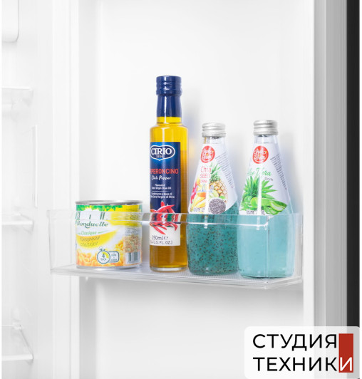 Холодильная камера:- 4 полки из закаленного стекла- 6 боковых полок- 2 ящика для фруктов и овощей- подставка для яиц
