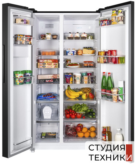 Дополнительная информация:- Инверторный компрессор- Функция памяти настроек- Функция задержки включения (защита от повреждений в случае перебоев с питанием)- Функция смарт- Лёдогенератор в комплекте- Блокировка от детей- Система Leco (система ароматизации от неприятных запахов)- Боковое расположение морозильной камеры- Внутреннее покрытие: антибактериальный пластик