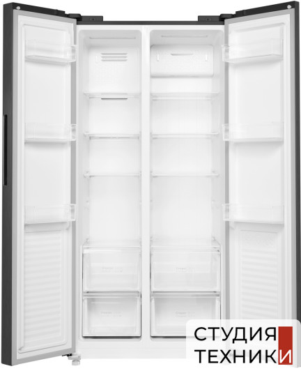 Общие характеристики:- Тип: отдельностоящий- Вид: холодильник с морозильником- Расположение морозильной камеры: сбоку- Количество камер: 2- Количество компрессоров: 1- Разморозка холодильной камеры: NoFrost- Разморозка морозильной камеры: NoFrost- Общий полезный объем холодильника: 430 л- Полезный объем холодильной камеры: 260 л- Полезный объем морозильной камеры: 170 л- Цвет: темная нержавеющая сталь- Уровень шума: 41 дБ- Класс энергетической эффективности: A+- Размеры (ВхШхГ): 177х83.3х63.7 см