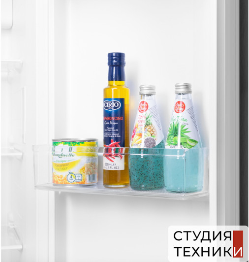 Холодильная камера:- 4 полки из закаленного стекла- 6 боковых полок- 2 ящика для фруктов и овощей- подставка для яиц