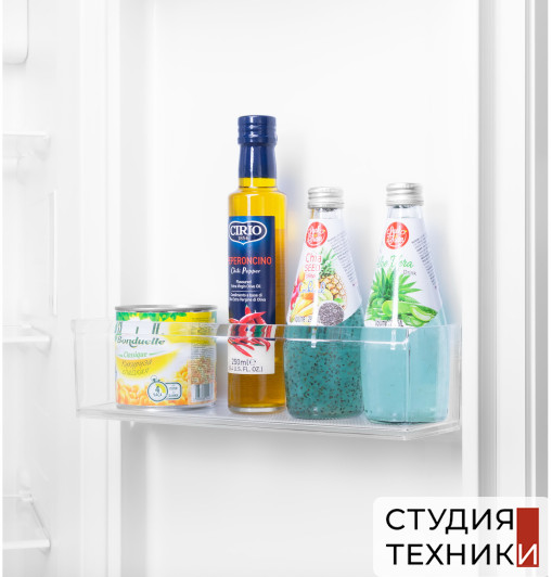 Холодильная камера:- 4 полки из закаленного стекла- 6 боковых полок- 2 ящика для фруктов и овощей- подставка для яиц