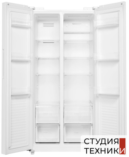 Общие характеристики:- Тип: отдельностоящий- Вид: холодильник с морозильником- Расположение морозильной камеры: сбоку- Количество камер: 2- Количество компрессоров: 1- Разморозка холодильной камеры: NoFrost- Разморозка морозильной камеры: NoFrost- Общий полезный объем холодильника: 430 л- Полезный объем холодильной камеры: 260 л- Полезный объем морозильной камеры: 170 л- Цвет: белый- Уровень шума: 41 дБ- Класс энергетической эффективности: A+- Размеры (ВхШхГ): 177х83.3х63.7 см