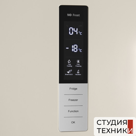 Управление, функции:- Элементы управления: сенсорные панель управления- Дисплей- Функция «Отпуск»- Функция «Быстрая заморозка»- Функция «Быстрое охлаждение»- Сигнализация открытой двери- Сигнализация повышения температуры- Функция задержки включения (защита от повреждений в случае перебоя питания)