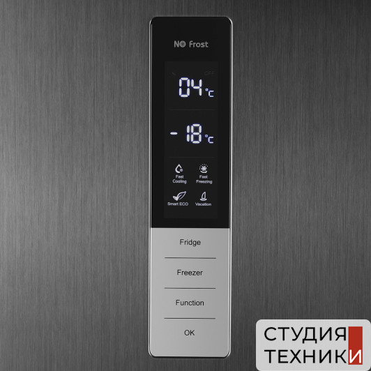Управление, функции:- Элементы управления: сенсорные панель управления- Дисплей- Функция «Отпуск»- Функция «Быстрая заморозка»- Функция «Быстрое охлаждение»- Сигнализация открытой двери- Сигнализация повышения температуры- Функция задержки включения (защита от повреждений в случае перебоя питания)
