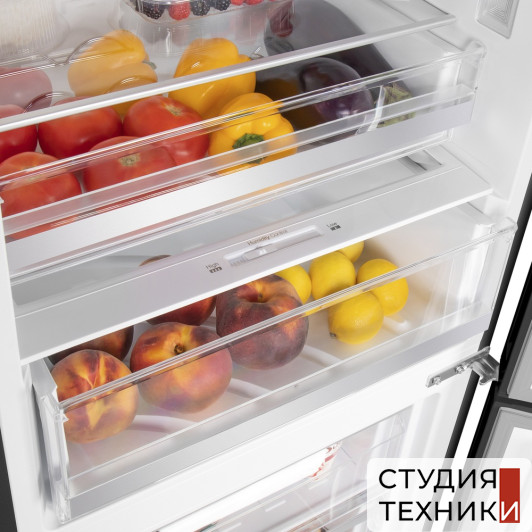 Управление, функции:- Элементы управления: сенсорные кнопки- Дисплей- Функция «Отпуск»- Функция «Быстрая заморозка»- Функция «SMART ECO»- Блокировка от детей- Сигнализация открытой двери- Сигнализация повышения температуры- Регулировка влажности в зоне свежести- Функция задержки включения (защита от повреждений при сбое питания)