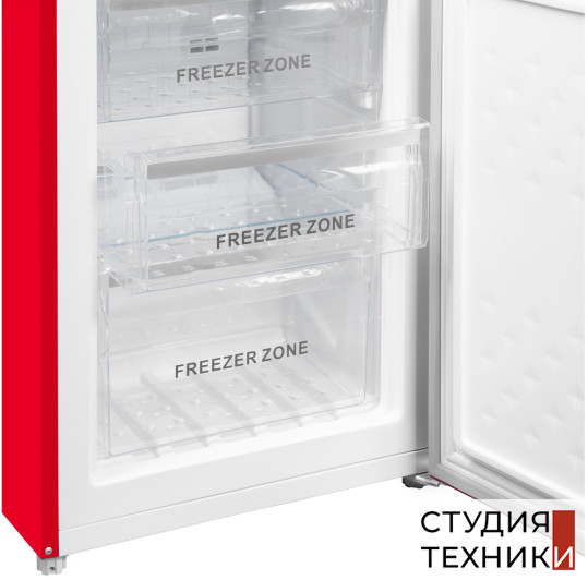 Общие характеристики:- Тип: отдельностоящий- Вид: холодильник с морозильником- Расположение морозильной камеры: снизу- Количество камер: 2- Количество компрессоров: 1- Разморозка холодильной камеры: NoFrost- Разморозка морозильной камеры: NoFrost- Общий полезный объем холодильника: 250 л- Полезный объем холодильной камеры: 178 л- Полезный объем морозильной камеры: 72 л- Цвет: красный- Уровень шума: 45 дБ- Класс энергетической эффективности: A+- Размеры (ВхШхГ): 186.5х54х60 см