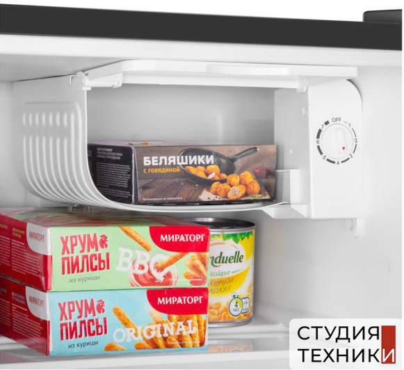 Холодильная камера:- 1 полка из закаленного стекла- 2 боковые полки- Лоток для яиц- Форма для льда- Лоток для сбора конденсата
