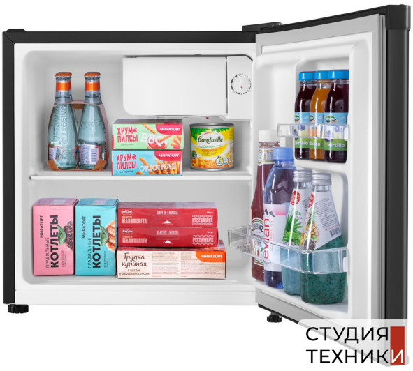 Общие характеристики:- Тип: отдельностоящий- Вид: холодильник с камерой охлаждения- Количество камер: 1- Количество компрессоров: 1- Разморозка холодильной камеры: DeFrost- Общий полезный объем холодильника: 46 л- Материал фасада: эмаль- Цвет: черный- Уровень шума: 40 дБ- Класс энергетической эффективности: A+- Размеры (ВхШхГ): 49.6х47х44.7 см