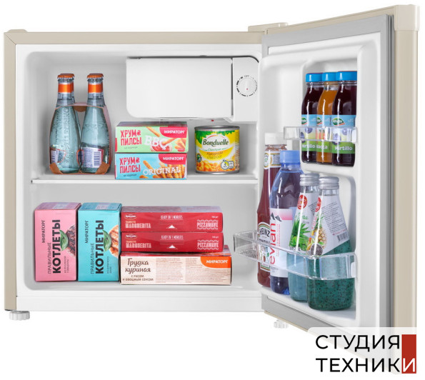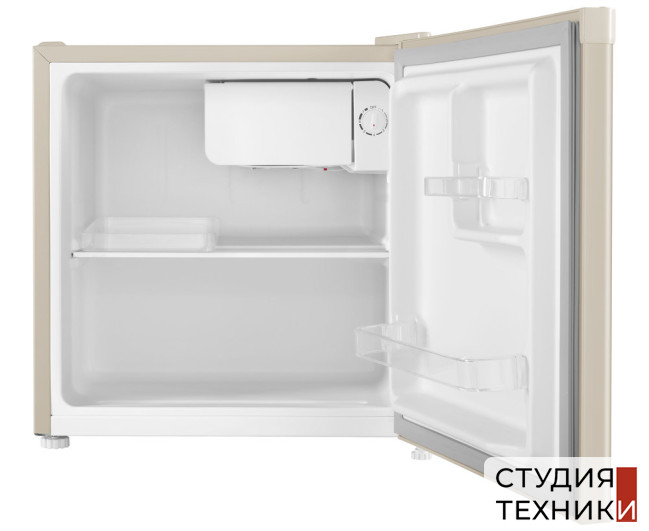Общие характеристики:- Тип: отдельностоящий- Вид: холодильник с камерой охлаждения- Количество камер: 1- Количество компрессоров: 1- Разморозка холодильной камеры: DeFrost- Общий полезный объем холодильника: 46 л- Материал фасада: эмаль- Цвет: бежевый- Уровень шума: 40 дБ- Класс энергетической эффективности: A+- Размеры (ВхШхГ): 49.6х47х44.7 см