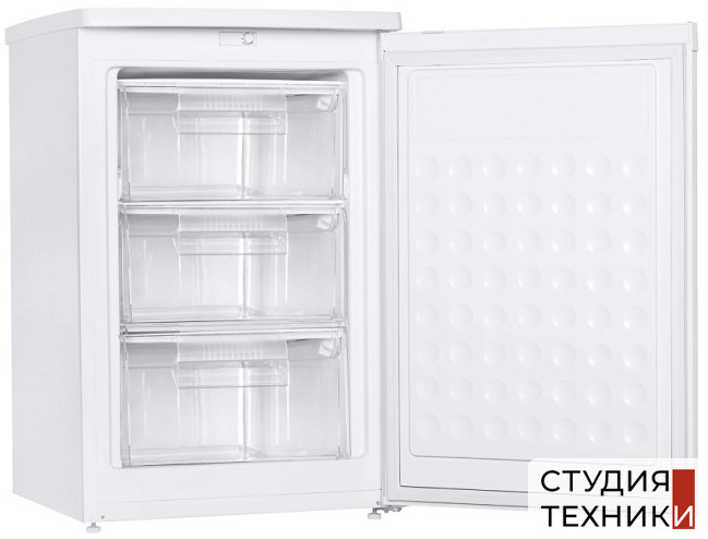 Общие характеристики:- Тип: отдельностоящий- Вид: морозильная камера- Количество камер: 1- Количество компрессоров: 1- Разморозка морозильной камеры: No Frost- Общий объем морозильника: 88 л- Полезный объем морозильной камеры: 80 л- Цвет: белый- Уровень шума: 42 дБ- Класс энергетической эффективности: A+- Размеры (ВхШхГ): 84.5х54.5х56.6 см