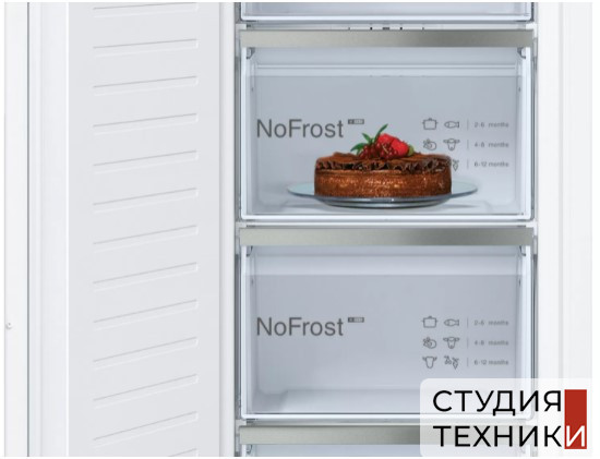 Общие характеристики:- Тип: встраиваемый- Вид: морозильник- Количество камер: 1- Количество компрессоров: 1- Количество дверей: 1- Система охлаждения: No Frost- Разморозка морозильной камеры: автоматическая- Полезный объем морозильной камеры: 211 л- Цвет: белый- Уровень шума: 36 дБ- Климатический класс: SN-T- Класс энергетической эффективности: A+- Годовое потребление энергии: 243 кВт/ч- Мощность подключения: 0,12 кВт- Размеры (ВхШхГ): 177.2х55.8х54.5 см- Размеры ниши для встраивания (ВхШхГ): 177.2-178х56х55-56 см