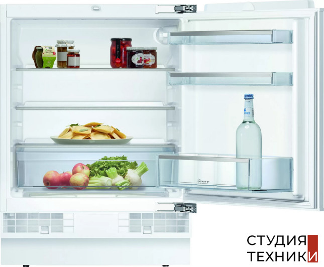 Общие характеристики:- Тип: встраиваемый- Вид: холодильник без морозильника- Количество камер: 1- Количество компрессоров: 1- Разморозка холодильной камеры: капельная (автоматическая)- Общий объем холодильника: 141 л- Цвет: белый- Уровень шума: 38 дБ- Класс энергетической эффективности: A+- Годовое потребление энергии: 118 кВтч/год- Мощность подключения: 0.9 кВт- Размеры (ВхШхГ): 81.8х59.8х54.8 см- Размеры встраивания (ВxШxГ): 82x60x55 см Управление:- Электронное управление с поворотным переключателем Холодильная камера:- 3 полки из ударопрочного стекла, переставляемые по высоте, 1 складная- Прозрачный бокс для овощей и фруктов, с крышкой- Особенно яркое внутреннее освещение Daylight 1х25 Вт
