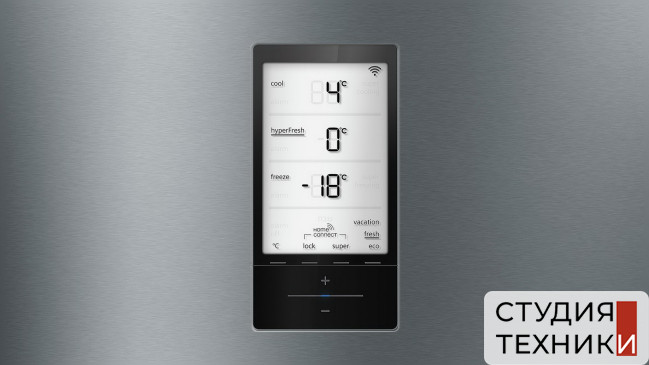 Управление, функции:- Электронное управление- Элементы управления: сенсорные кнопки- LCD-дисплей- ЖК – дисплей на дверце- Индикация температуры морозильной камеры- Регулировка яркости индикатора температуры - Индикация повышения температуры- Индикация включения- Индикация открытой двери морозильной камеры- Индикация отключения питания- Цвет индикации: белый - Индикация отключения электропитания: звуковая - Индикация повышения температуры: визуальная - Индикация открытой двери: звуковая - Индикация температуры холодильной камеры