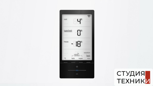 Управление, функции:- Электронное управление- Элементы управления: сенсорные кнопки- LCD-дисплей- ЖК – дисплей на дверце- Индикация температуры морозильной камеры- Регулировка яркости индикатора температуры - Индикация повышения температуры- Индикация включения- Индикация открытой двери морозильной камеры- Индикация отключения питания- Цвет индикации: белый - Индикация отключения электропитания: звуковая - Индикация повышения температуры: визуальная - Индикация открытой двери: звуковая - Индикация температуры холодильной камеры