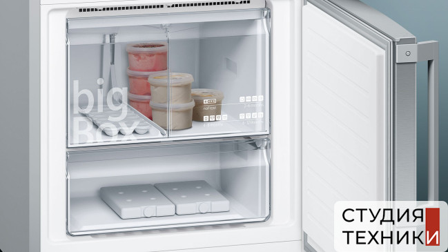 Морозильное отделение:- Система NоFrost- Расположение морозильной камеры: снизу- Регулируемая температура морозильного отделения- Время сохранения холода при отключении электроэнергии: 20 ч- Мощность замораживания: 18 кг/сутки- Количество выдвижных ящиков: 3- Материал ящиков в морозильной камере: пластик