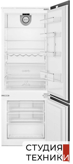 Общие характеристики:- Тип: встраиваемый- Вид: холодильник с морозильником- Количество камер: 2- Количество компрессоров: 1- Разморозка холодильной камеры: ручное- Разморозка морозильной камеры: ручное- Общий объем холодильника: 400 л- Объем холодильной камеры: 300 л- Объем морозильной камеры: 100 л- Цвет: белый- Количество дверей: 2- Дверной упор: справа- Уровень шума: 35 дБ- Климатический класс: SN-T- Годовое потребление энергии: 240 кВтч/год- Размеры (ВхШхГ): 1944х68.9х55 см- Размеры ниши для встраивания (ВхШхГ): 194.3-194.4х71.4х56.3 см