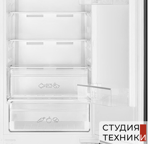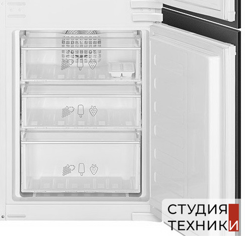 Общие характеристики:- Тип: встраиваемый- Вид: холодильник с морозильником- Количество камер: 2- Количество компрессоров: 1- Разморозка холодильной камеры: No Frost- Разморозка морозильной камеры: No Frost- Общий объем холодильника: 284 л- Объем холодильной камеры: 196 л- Объем морозильной камеры: 69 л- Объем зоны свежести: 19 л- Цвет: белый- Количество дверей: 2- Дверной упор: справа- Уровень шума: 37 дБ- Класс энергетической эффективности: A+- Климатический класс: SN-N-SТ-T- Годовое потребление энергии: 262 кВтч/год- Размеры (ВхШхГ): 193.5х54х54.5 см- Размеры ниши для встраивания (ВхШхГ): 194-195х56х55.5 см