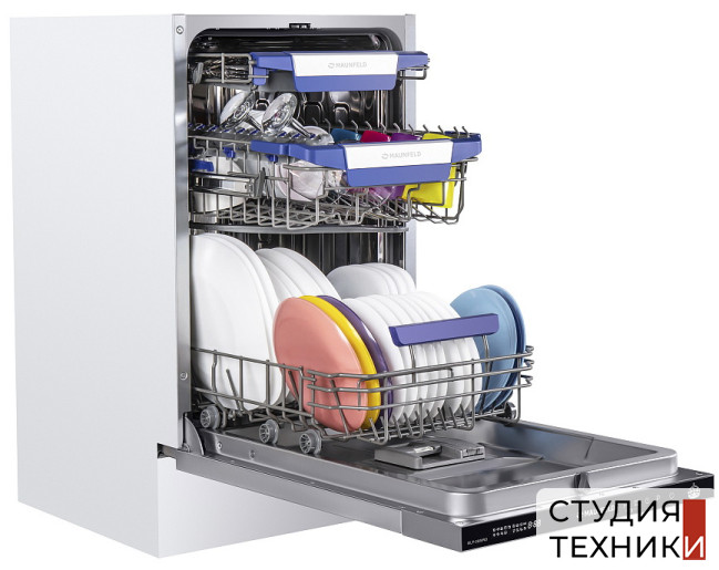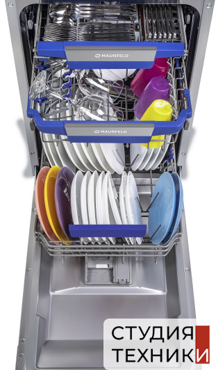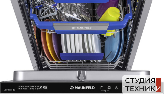 Посудомоечная машина Maunfeld MLP-08IMROОбщие характеристики:- Вид: узкая- Тип: встраиваемая- Цвет: белый- Вместительность: 10 комплектов посуды- Уровень шума: 47 дБ- Класс сушки: A- Класс энергопотребления: А++- Потребление энергии цикл: 0,72 кВт- Расход воды за цикл: 9 л- Мощность подключения: 2,1 кВт- Размеры (ВxШxГ): 81.5х44.8х55 см- Размеры ниши для встраивания (ВхШхГ): 82х45х58 см