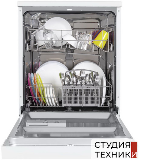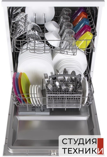 Общие характеристики:- Вид: полноразмерная- Тип: отдельностоящая- Цвет: белый- Вместительность: 12 комплектов посуды- Уровень шума: 52 дБ- Класс сушки: A- Класс энергопотребления: А+- Потребление энергии цикл: 0,75 кВт- Расход воды за цикл: 9 л- Мощность подключения: 2,1 кВт- Размеры (ВxШxГ): 84.5х59.8х60 см