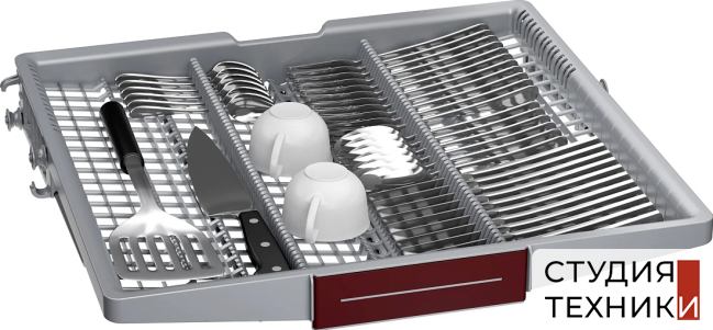 Комплектация:- Количество корзин: 3- Переставляемые короба VarioFlex- Переставляемый по высоте верхний короб- Третий уровень загрузки для столовых приборов- Корзина для столовых приборов в нижем коробе- Складные направляющие для тарелов в нижнем коробе- Полки для чашек эспрессо в нижнем коробе