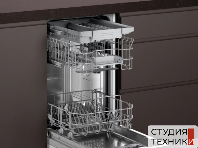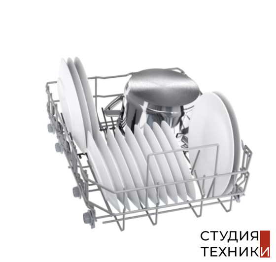 Общие характеристики:- Вид: узкая- Тип установки: встраиваемая- Тип сушки: теплообменник- Вместительность: 11 комплектов посуды- Уровень шума: 44 дБ- Цвет: серебристый- Класс мытья: A - Класс сушки: A- Количество программ мытья: 5 - Количество температур мытья: 4- Класс энергопотребления: А - Мощность подключения: 2.4 кВт- Размеры (ВxШxГ): 81.5-87.5x44.8x55 см- Размеры ниши для встраивания (ВхШхГ): 81.5-87.5х45х55 см
